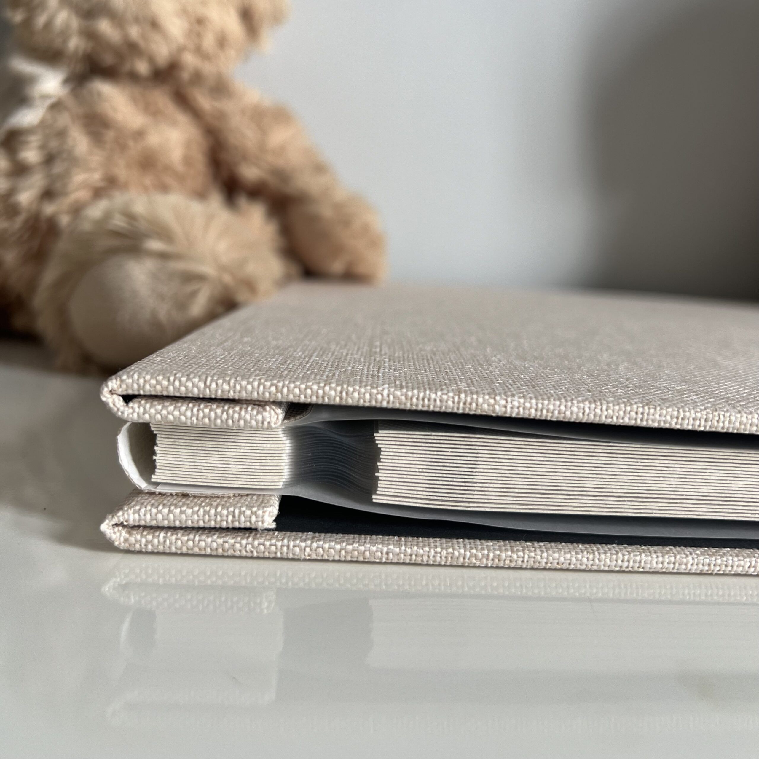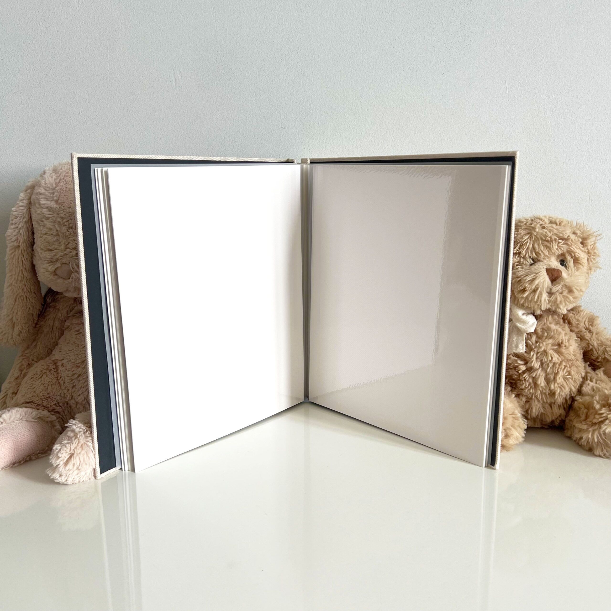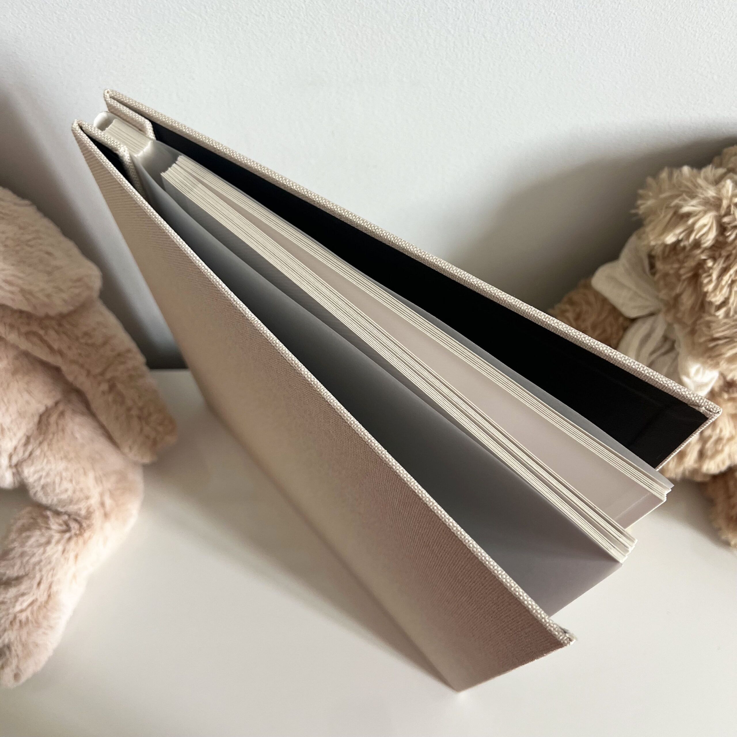 Photo Album misura 27×26 cm o 17,5×18 cm con copertina in Lino 20 pagine rigide in cartoncino autoadesivo.