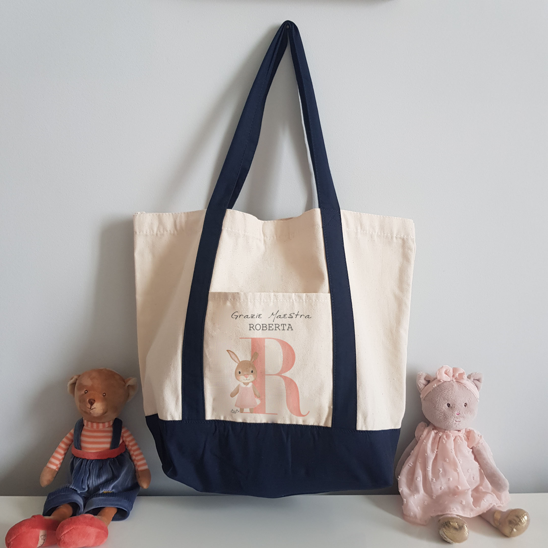 Borsa Bianca e Blu Bibibaby Grazie Maestra