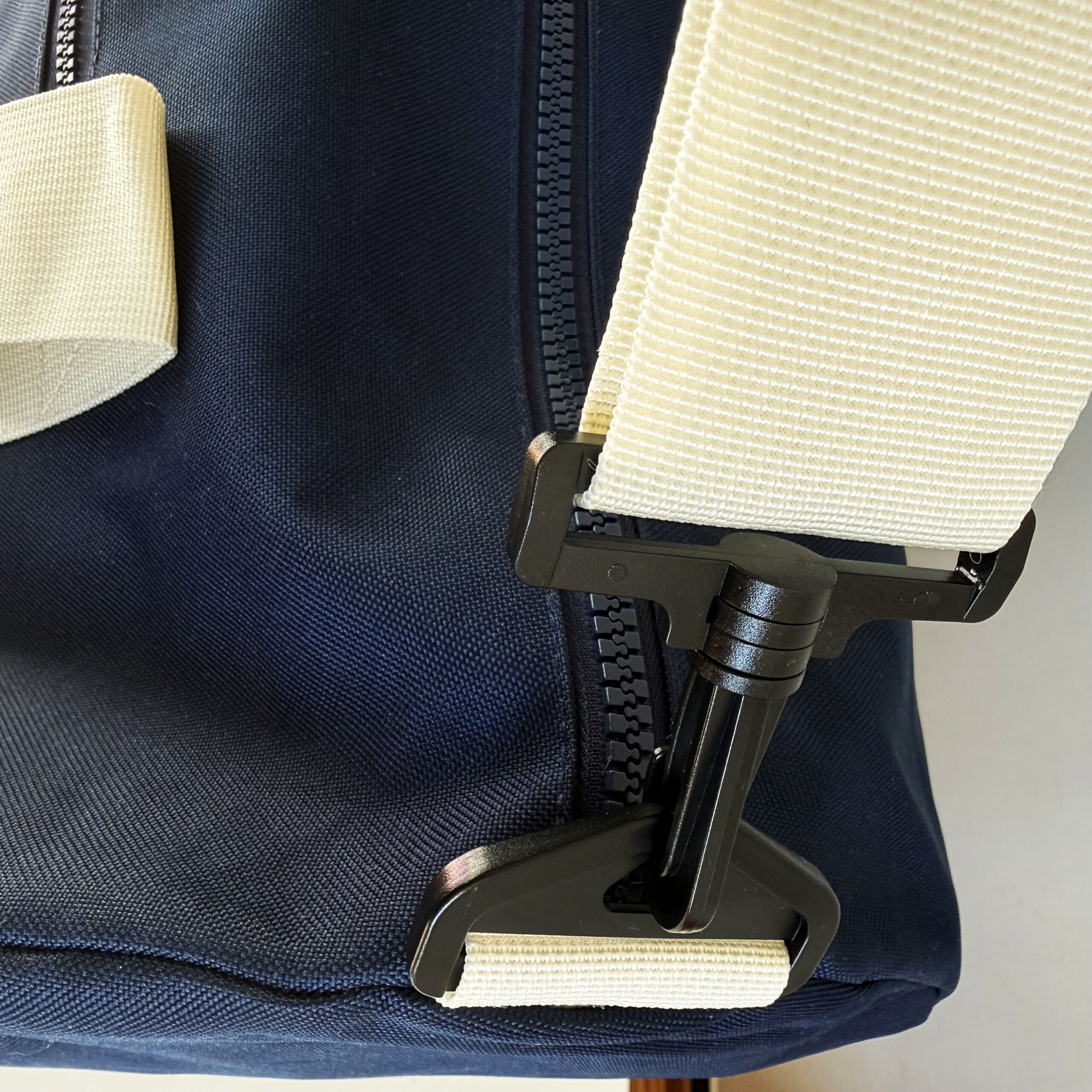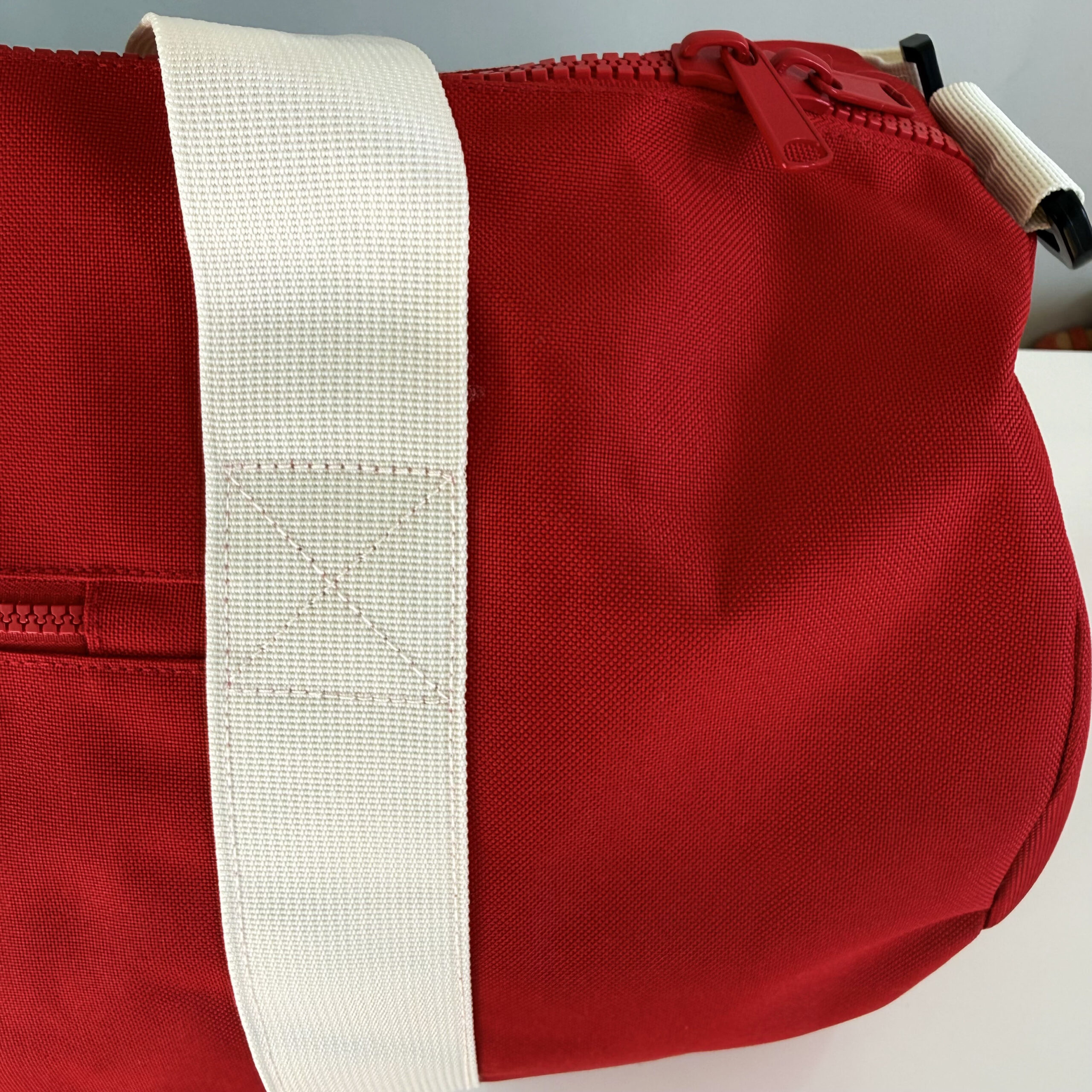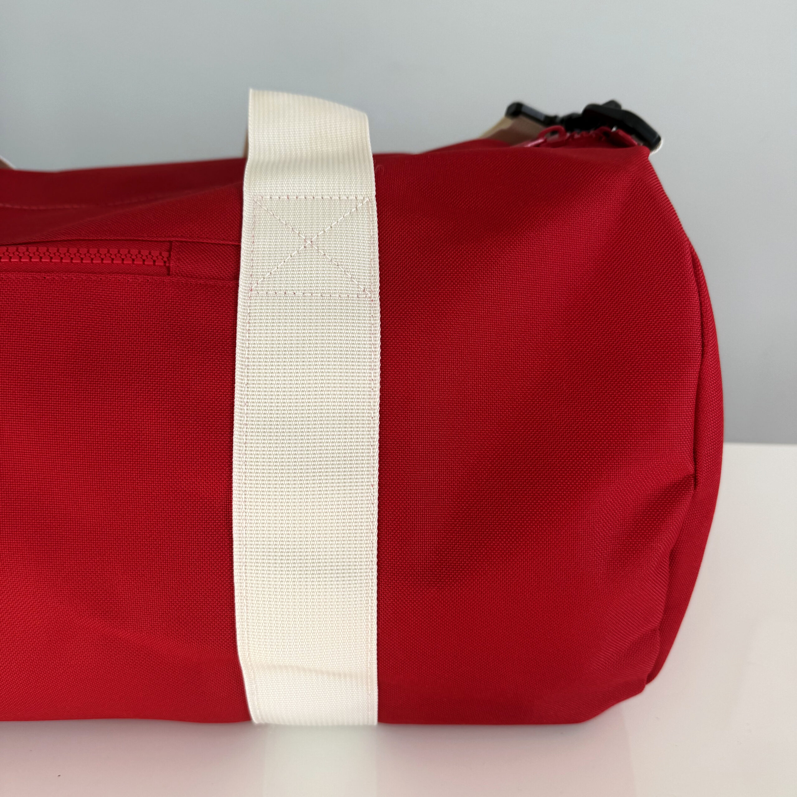 100% POLIESTERE SACCA CON DOPPIA CERNIERA con MANIGLIE color PANNA – TRACOLLA REGOLABILE STACCABILE – TASCA ESTERNA CON ZIP